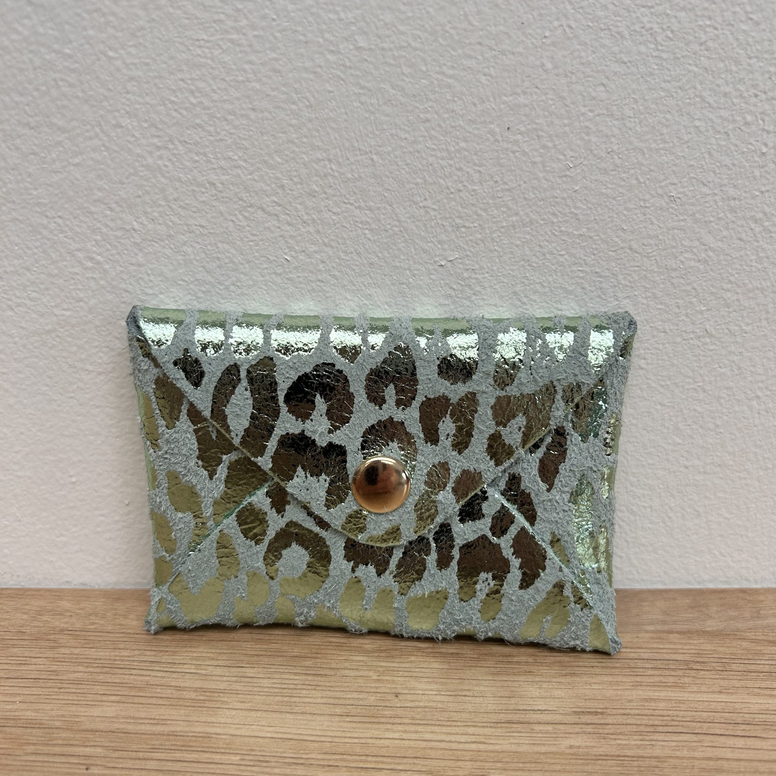 Pochette en cuir Léo menthe léopard